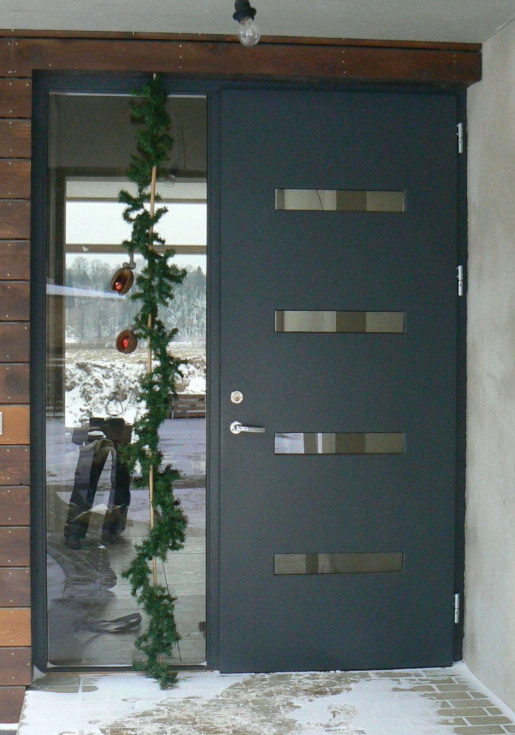 Lauko durys turi atitikti tokius reikalavimus: atsparumas dideliems temperatūrų pokyčiams, drėgmei ir tvirtumas. Šiuos reikalavimus atitinka ir mūsų gaminamos lauko durys. Jos gaminamos 6 cm storio, su termoizoliacija ir aliuminio sluoksniu apdailinėje plokštėje. Galimi modeliai su stiklo paketu tiek duryse, tiek viršduryje. Durys dengiamos lauko sąlygoms tinkančia Tiko faneruote, kuri gali būti papildomai alyvuojama, beicuojama, lakuojama, siekiant pagaminti duris Jums tinkamos spalvos. Durys gali būti papuoštos frezuotais grioveliais, įvairaus dydžio, kiekio, bei išdėstymo stiklo paketu. Lauko durys gaminamos individuliai, pagal Jūsų matmenis ir pasirinktą komplektaciją.